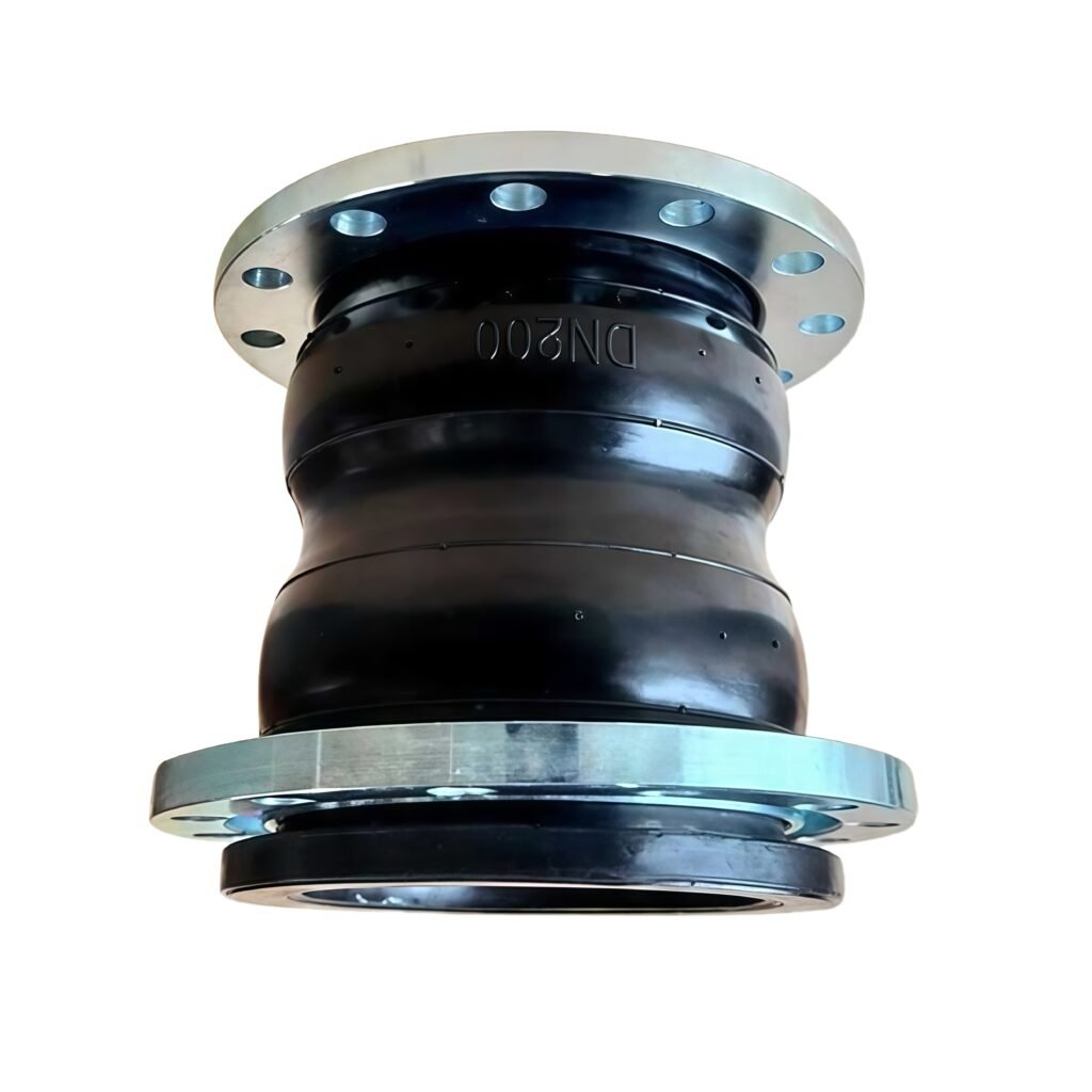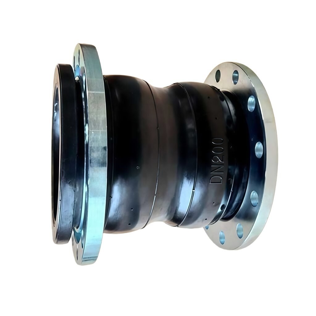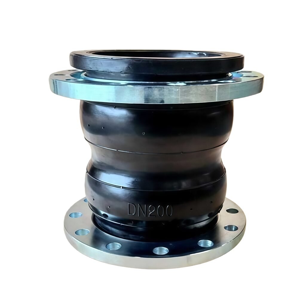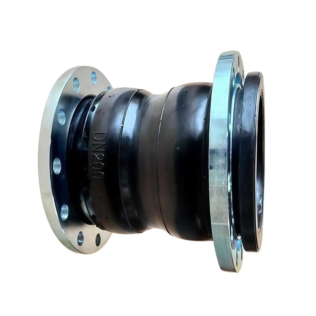 Double sphere rubber expansion joint with NBR rubber features two spherical rubber bellows interconnected by a metal flange or core. The bellows are made of high-quality NBR rubber, which is known for its excellent oil and fuel resistance, as well as its ability to withstand moderate temperatures and pressures. The metal flange or core provides structural support and ensures a secure connection to the piping system.