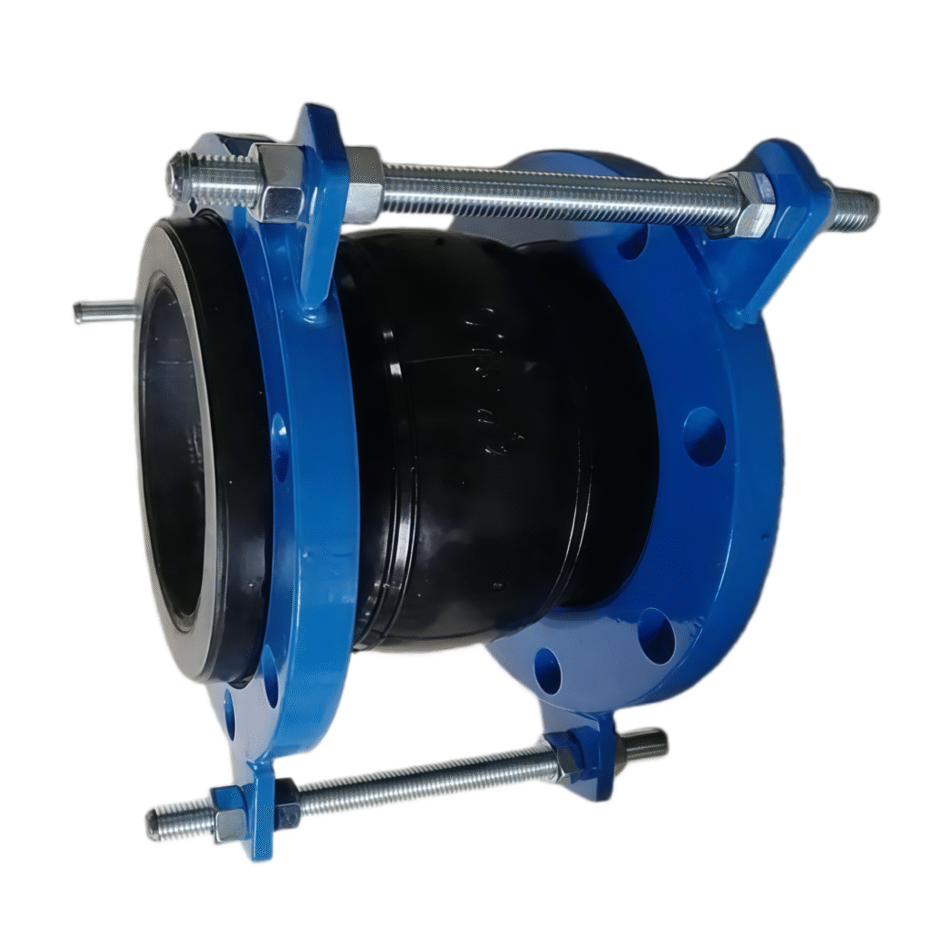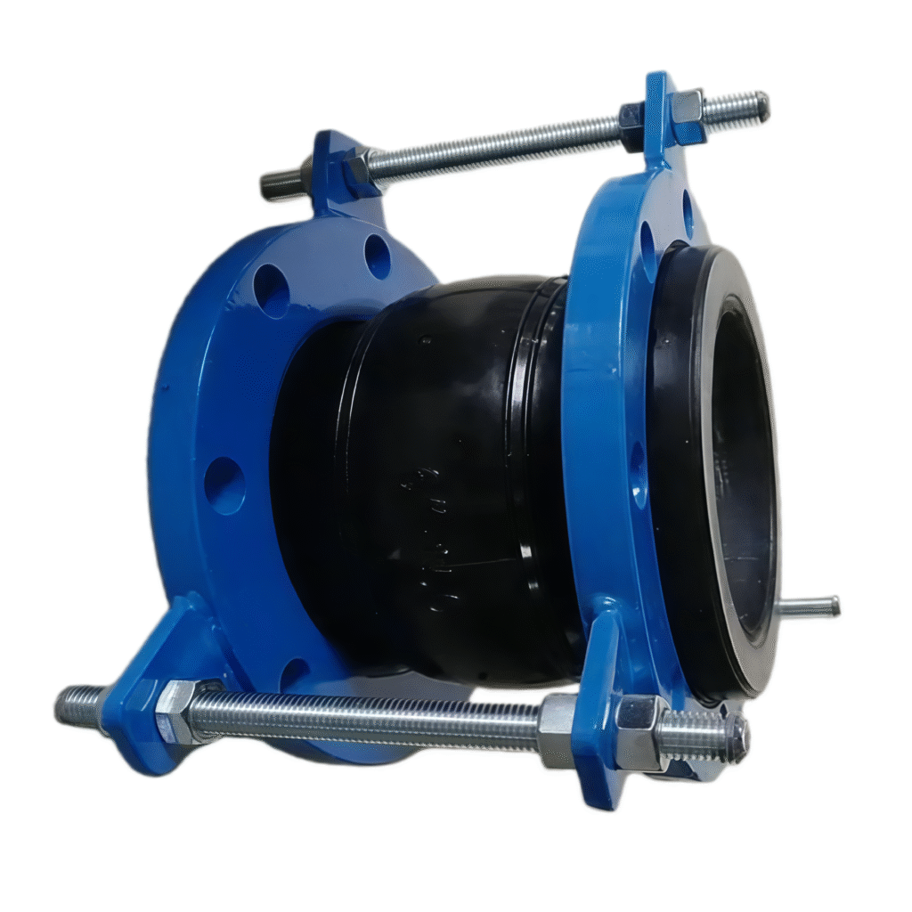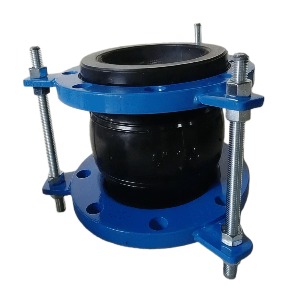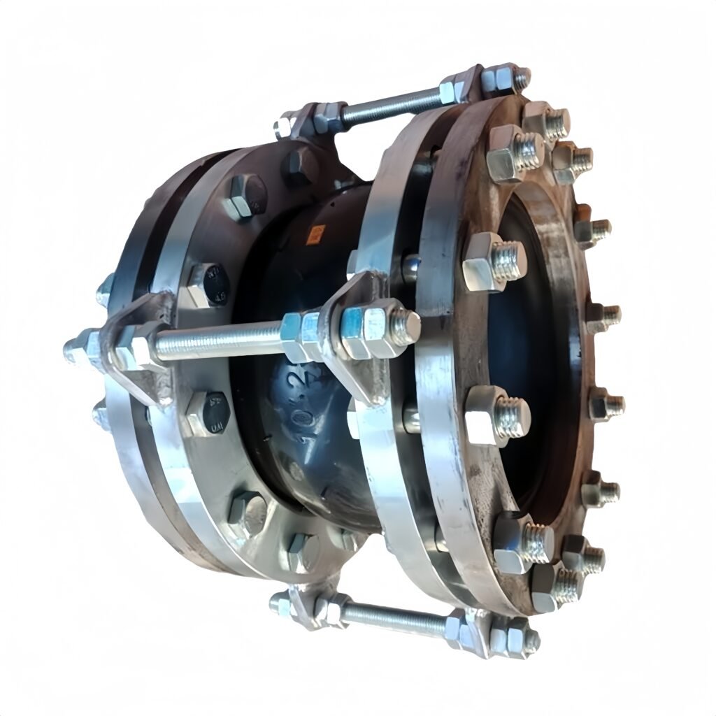This pull-out resistant flange rubber joint is a highly elastic and flexible piping system connection device. Its main features include pull-out resistant design, multi-directional displacement compensation, corrosion resistance, and high elasticity. Made of synthetic rubber with a smooth inner wall, it does not impede media flow. It has axial, lateral, and angular displacement compensation capabilities. Its core design is the pull-out resistant limiting device, which, through the combination of flange connection and limiting bolts, effectively limits excessive pipeline displacement, ensuring system stability. It is suitable for piping systems in industries such as water supply and drainage, chemical, and HVAC, and is particularly suitable for applications involving pump and valve ports, foundation settlement, or displacement. When used in high-rise buildings, it must be used in conjunction with an pull-out resistant device or fixed supports. During installation, bolts should be tightened diagonally to avoid contact with sharp metal objects or high-temperature areas. Anchor points must be located within the piping system, maintaining an alignment error within 3mm.