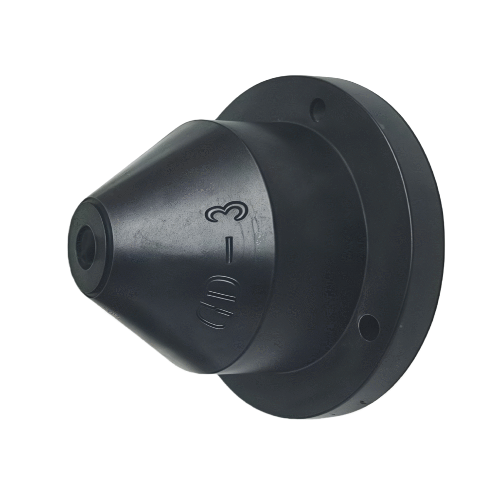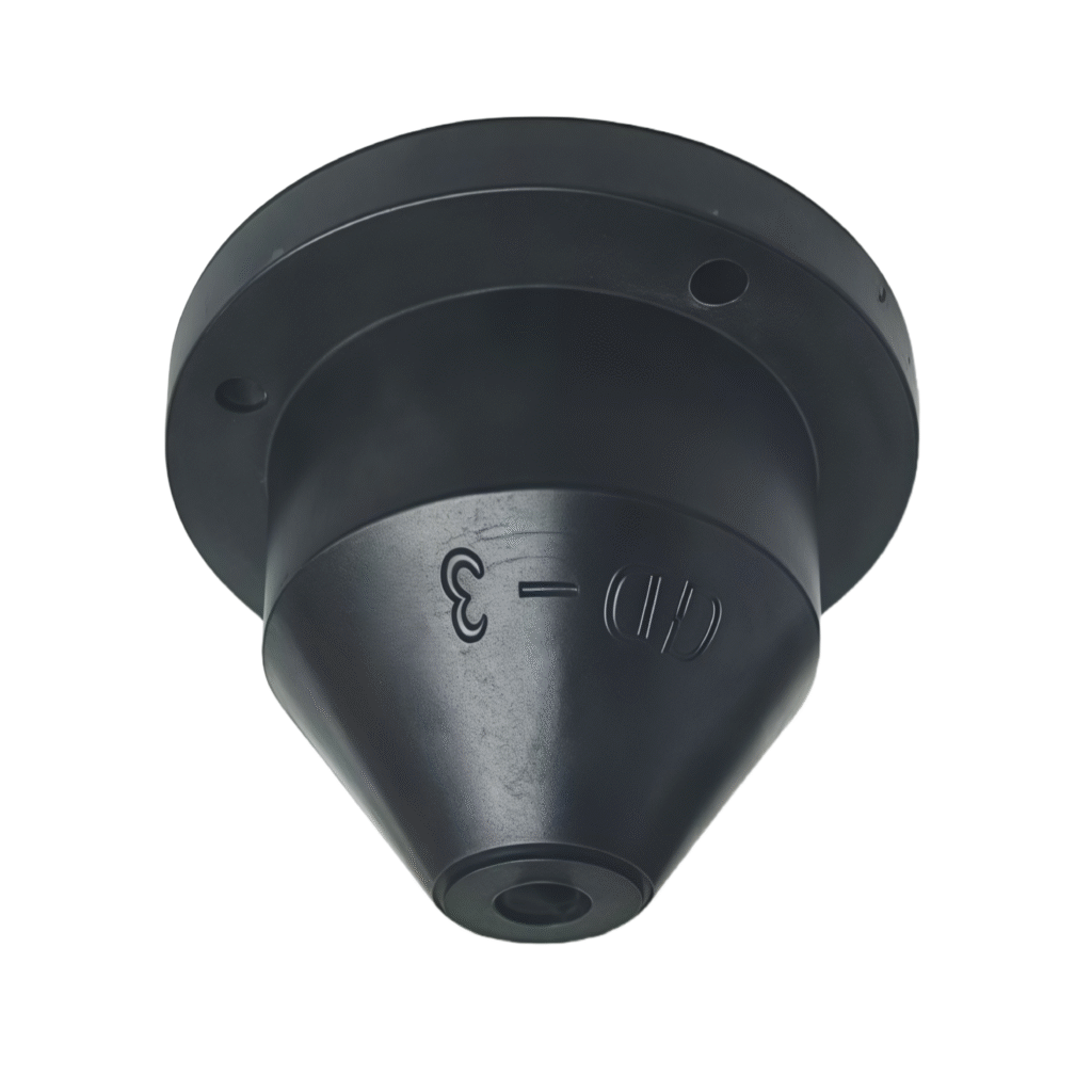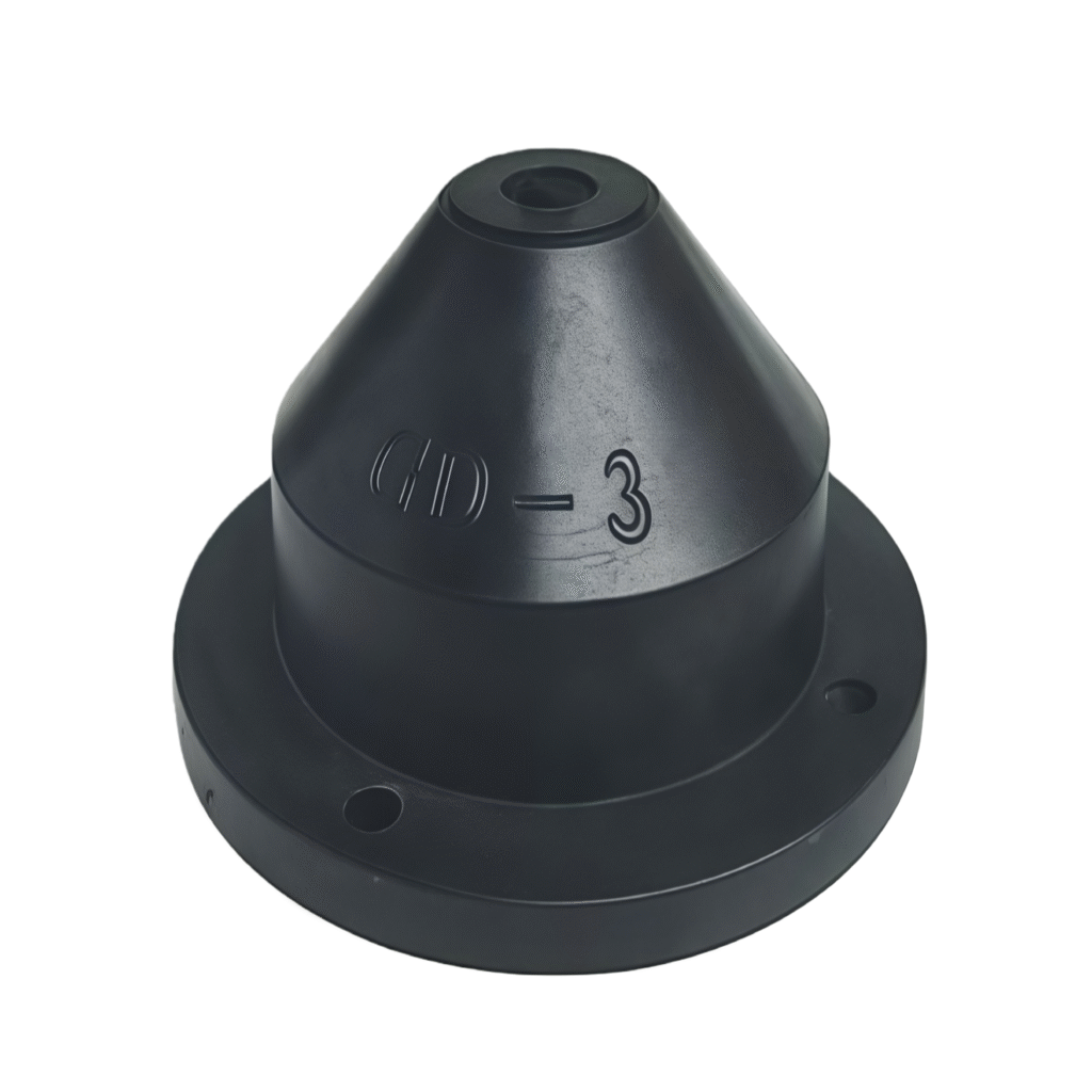 Type D rubber shear vibration isolators consist of inner and outer steel sleeves and a middle layer of synthetic rubber. After vulcanization, the central conical rubber portion is subjected to shear force, exhibiting a wide range of deformation and a low natural frequency. The operating temperature range is -5℃ to +50℃, with stiffness varying with temperature; the damping ratio C/Cc > 0.07. They provide excellent vibration isolation for both active vibration isolation of mechanical equipment such as pumps, compressors, fans, generator sets, and refrigeration units, and passive vibration isolation of instruments and meters.